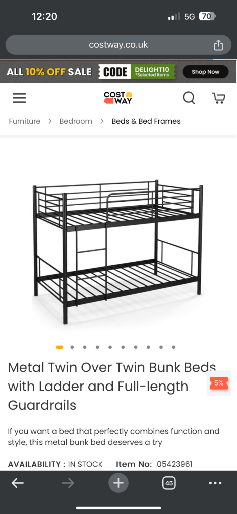 Space-saving Twin over Twin Bunk Bed: This twin over twin bunk bed is ideal for those who want to maximize their room space. In addition, the metal bunk bed suits for those families who have several children, proving a comfortable sleeping area for them.
