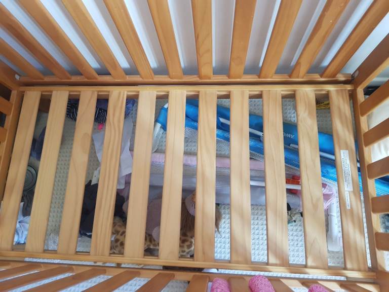 💕 Item has been used by 4 children and has plenty of use left. The end panels have been sanded at the top as one toddler was teething 🤣 includes mattress and mattress covers for free if wanted.