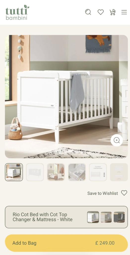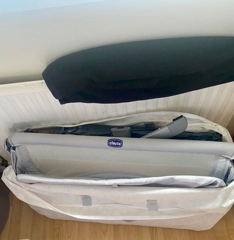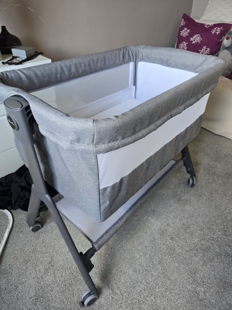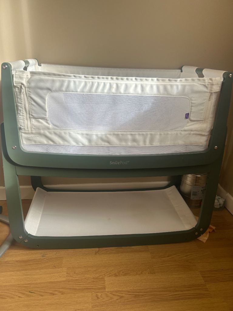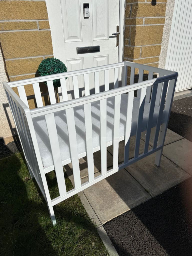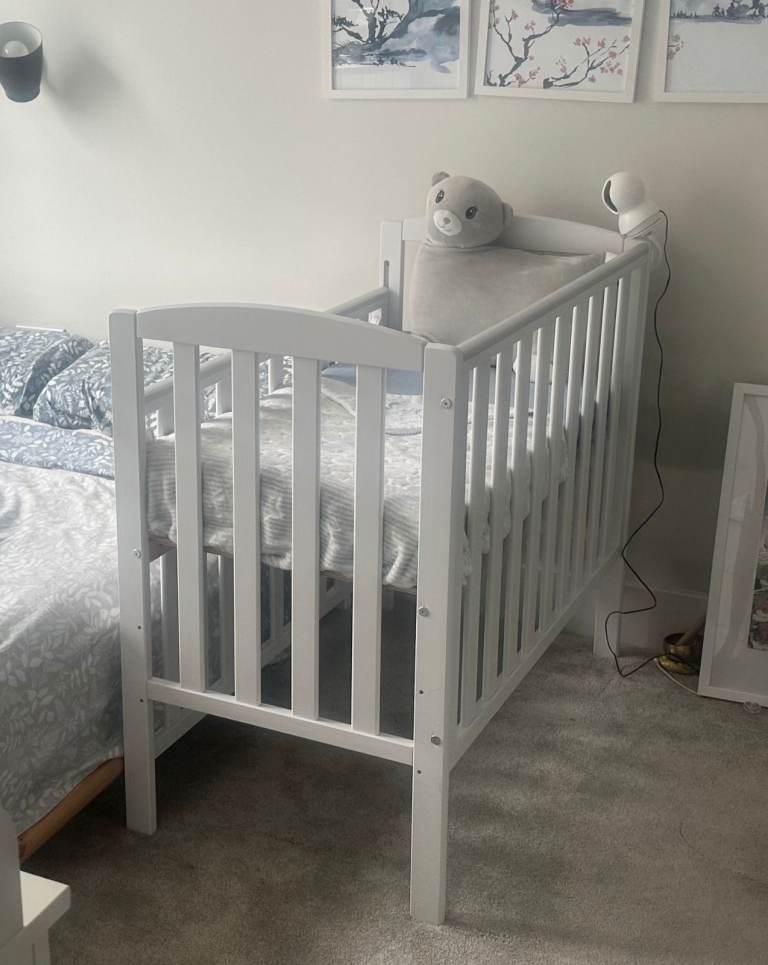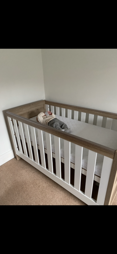 Beautiful sp  ace-saving baby cot in excellent condition. We bought it for our son, but he never ended up sleeping in it, so it has been barely used and is in near-new condition.