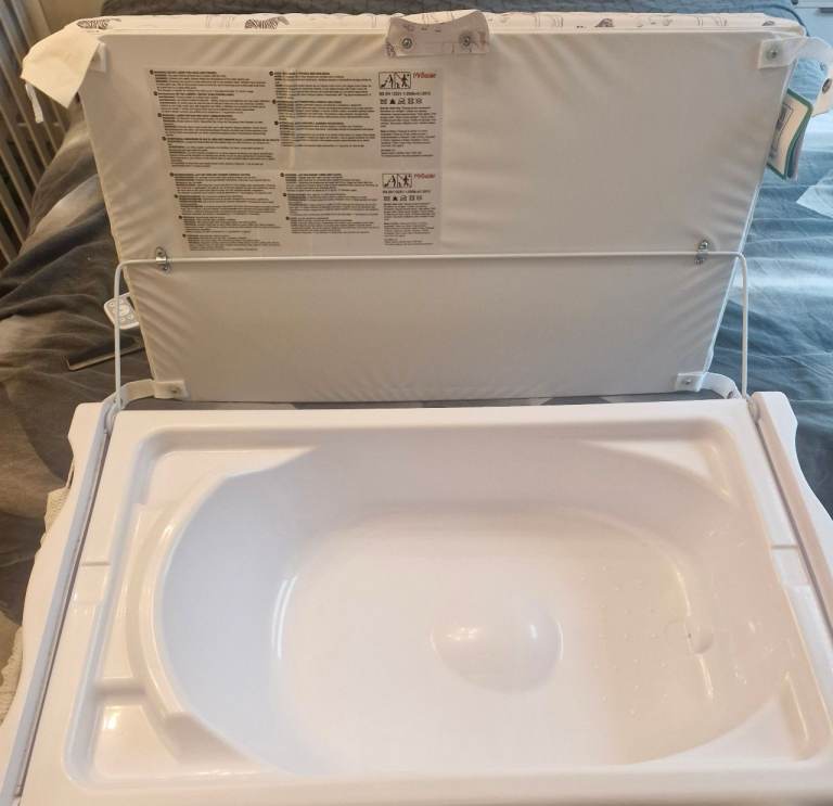 -2 in 1 baby changing table with built in bath unit and storage compartments.
