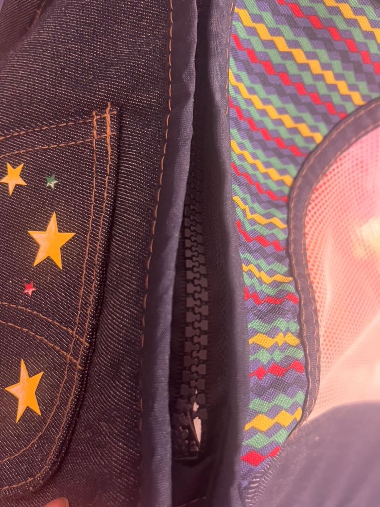 One side of the zip is missing a small part at the bottom, but it is still usable.