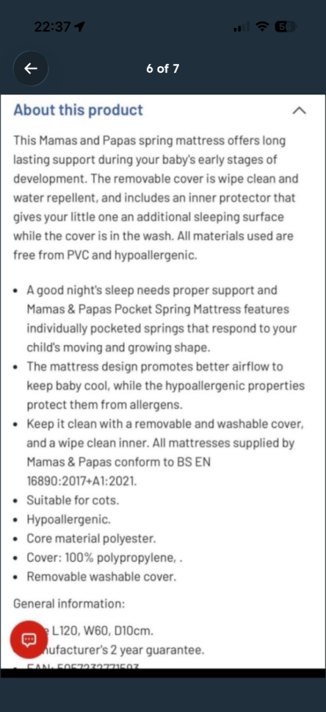 Comes with mamas and papas mattress