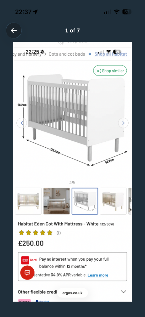 Eden cot from the habitat range from Argos