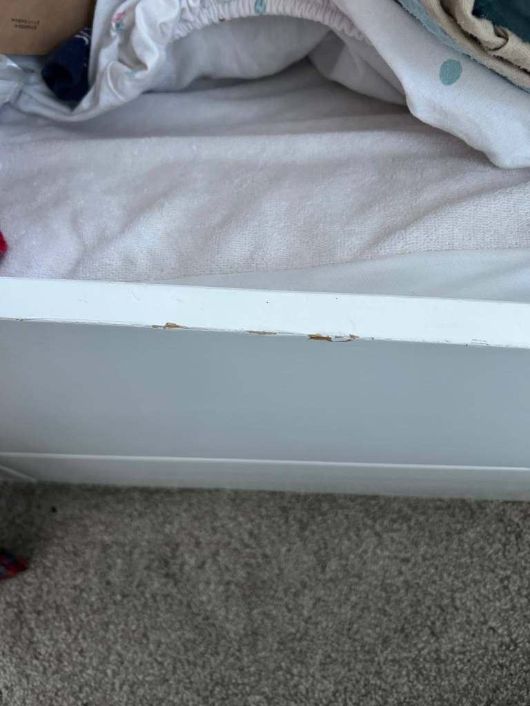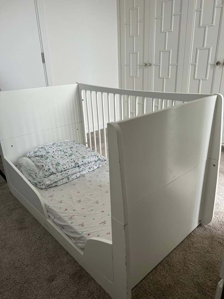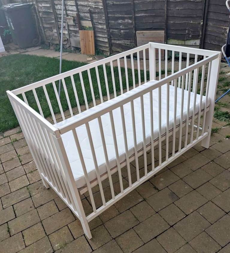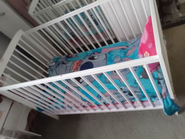 It has been used for our little one from New born until 4 yeras old, it has 3 mattress heights, transition from cot, toddler to junior bed (please see some small amount of paint flaked off but it's still in good condition).