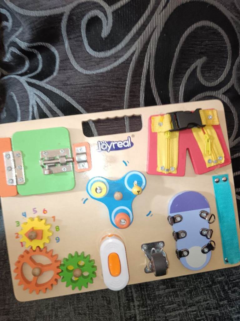Lovely wooden busy board by Joyreal, great for little ones to explore different textures and movements.