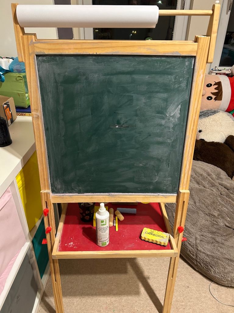 -Desk converts from easel to writing desk