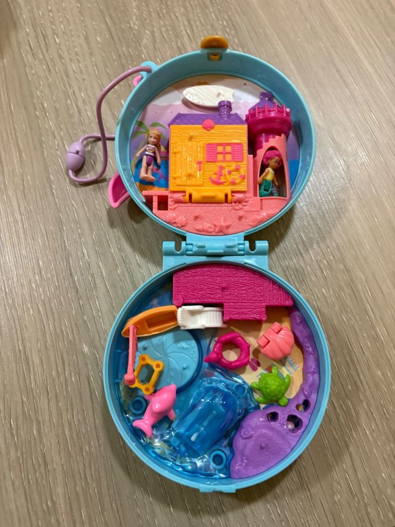 I am selling this Dolphin beach Polly pocket, it comes with 2 pollys and accessories, all in good used condition.