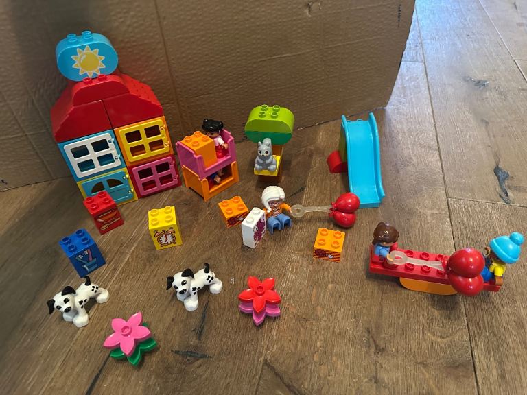 DUPLO first playhouse with blocks for daily routine (toothbrushing, bedtime story etc) plus birthday playground as per photo.