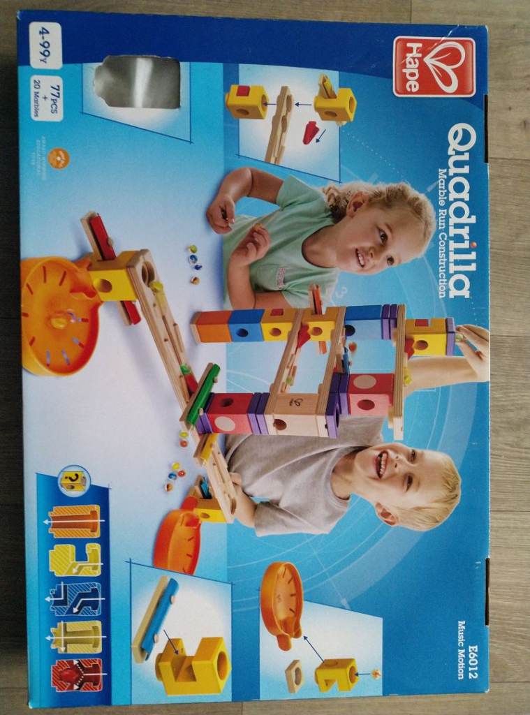 The Hape Quadrilla Marble Run E6012 is a construction toy set featuring 77 wooden pieces designed for creating intricate marble runs. With a focus on education, this set from the Hape brand is perfect for children who enjoy building and problem-solving. The set includes a variety of components to build a variety of constructions, all centered around the theme of construction and design. This toy provides hours of fun and creativity for young builders.