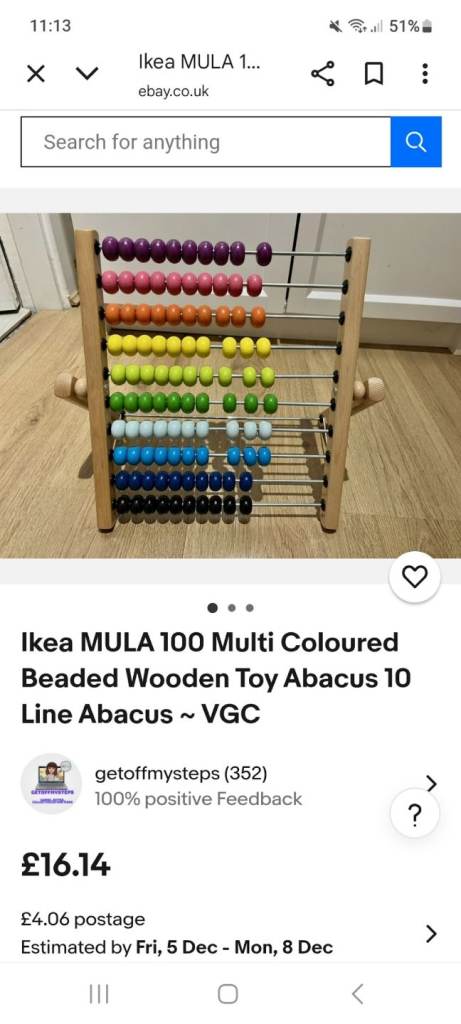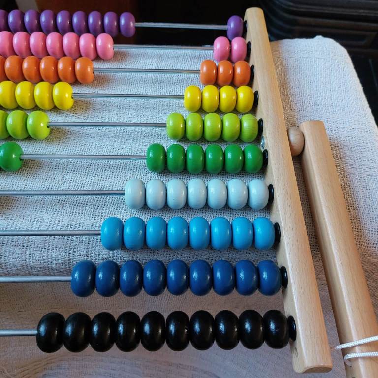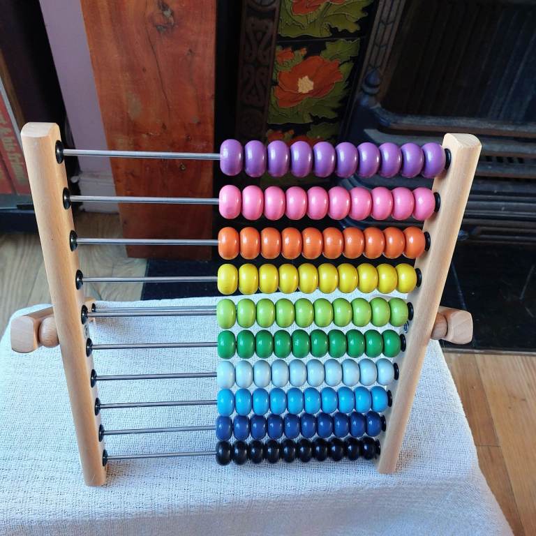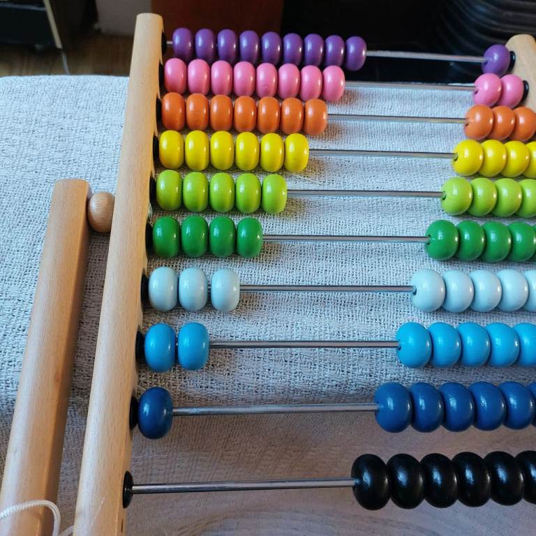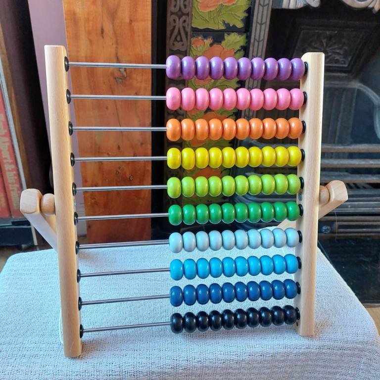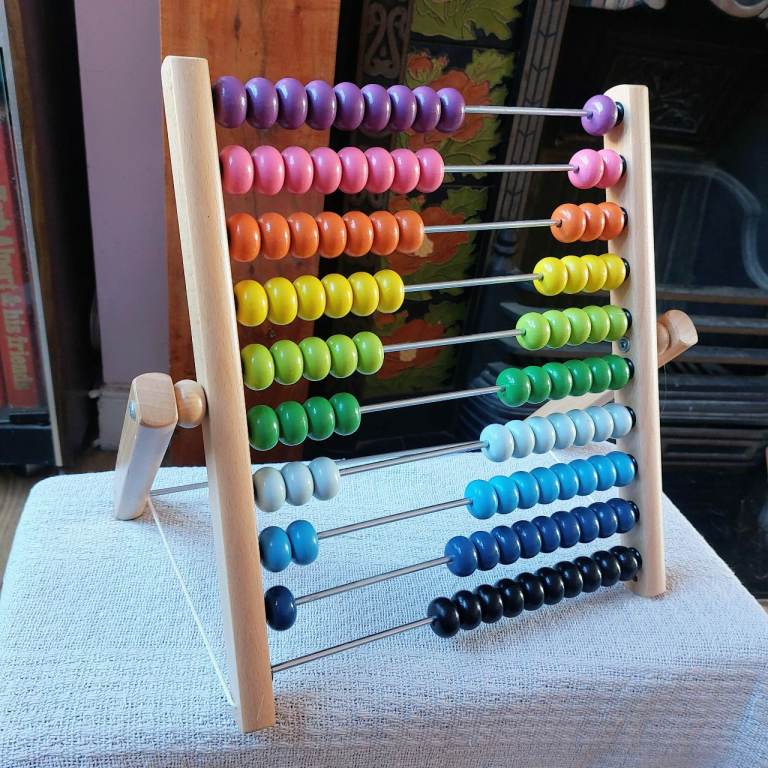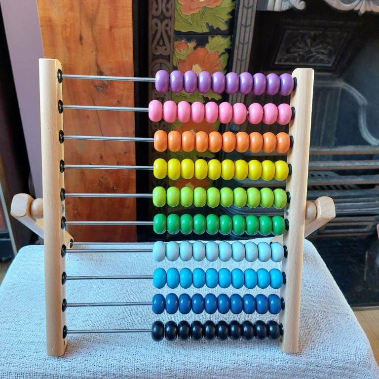 A lovely colourful Ikea Mula 100 multi coloured wooden bead abacus which folds away when not in use