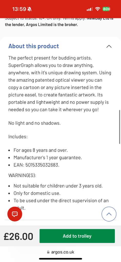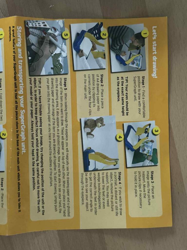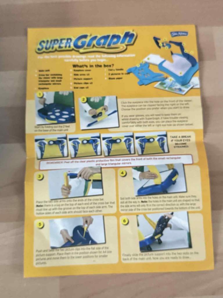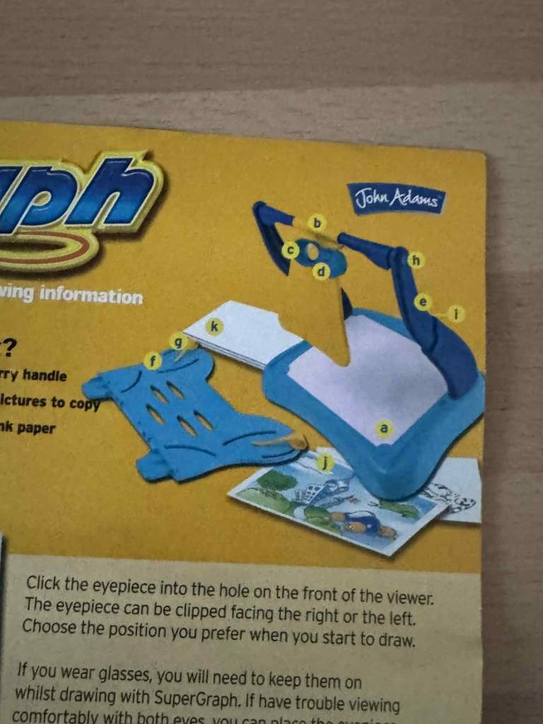 John Adams SuperGraph Drawing System, can copy photos, drawings or remove the picture holder to draw objects/scenery with no light or electrical input needed.