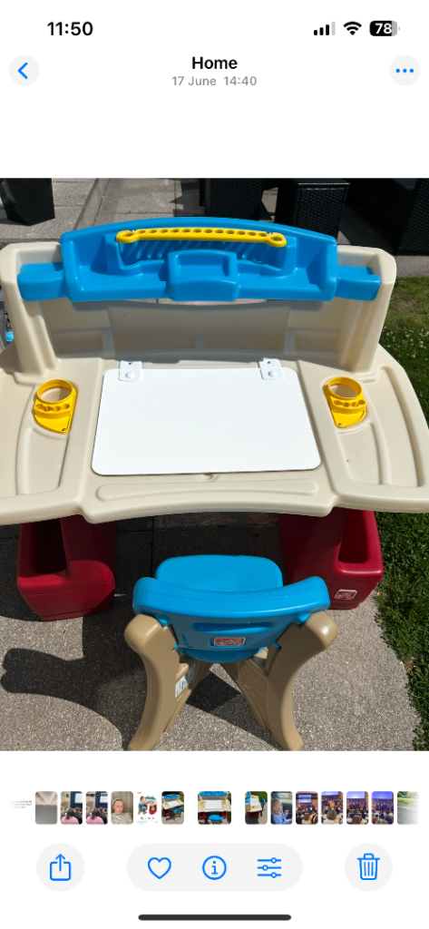 Kids art table and chair hardly been used in great condition still selling in smyths for £100 great Christmas present