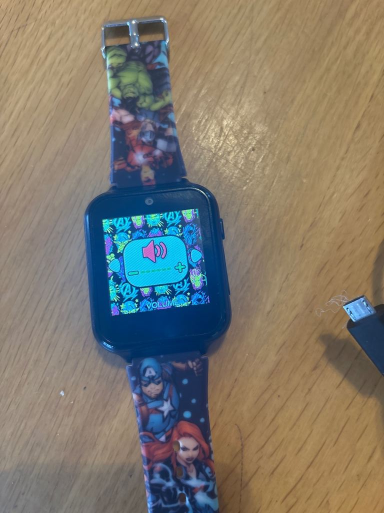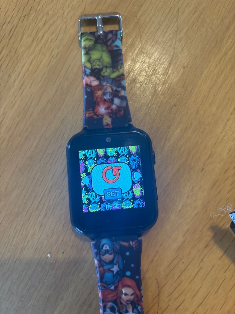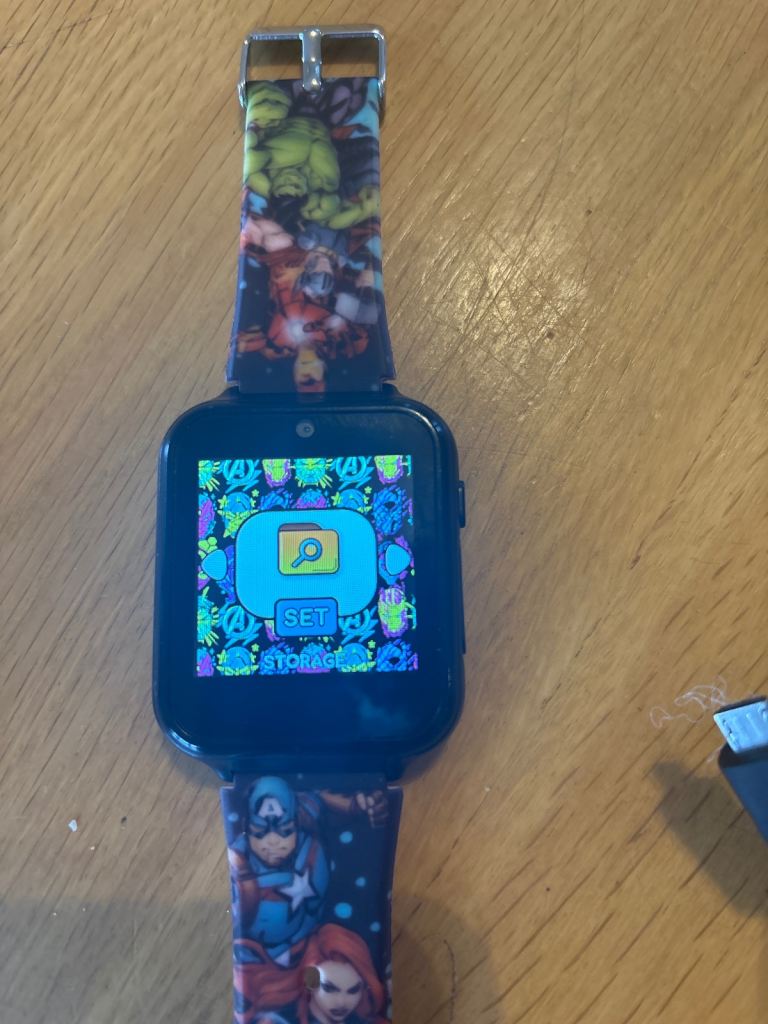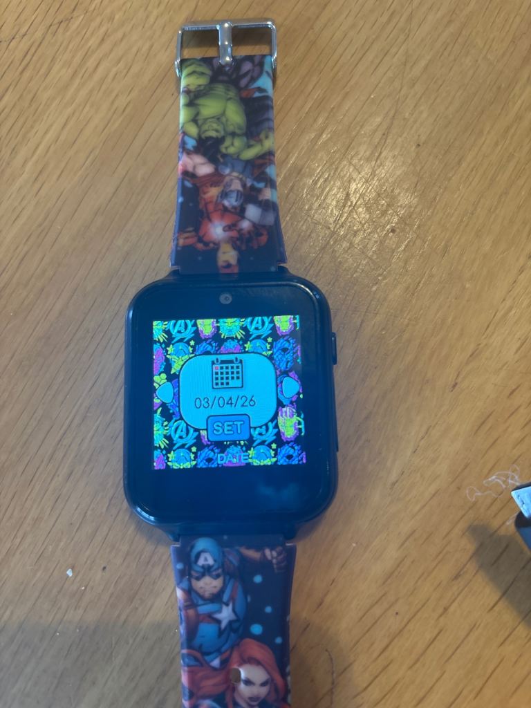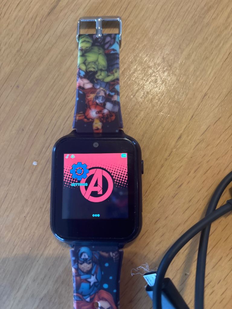 This is a kids Marvel Avengers smart watch. This has hardly been used and is in excellent condition. This has alarms with ‘hulk smash’ . Has got a camera, play games ect.