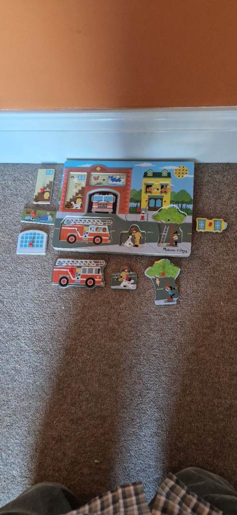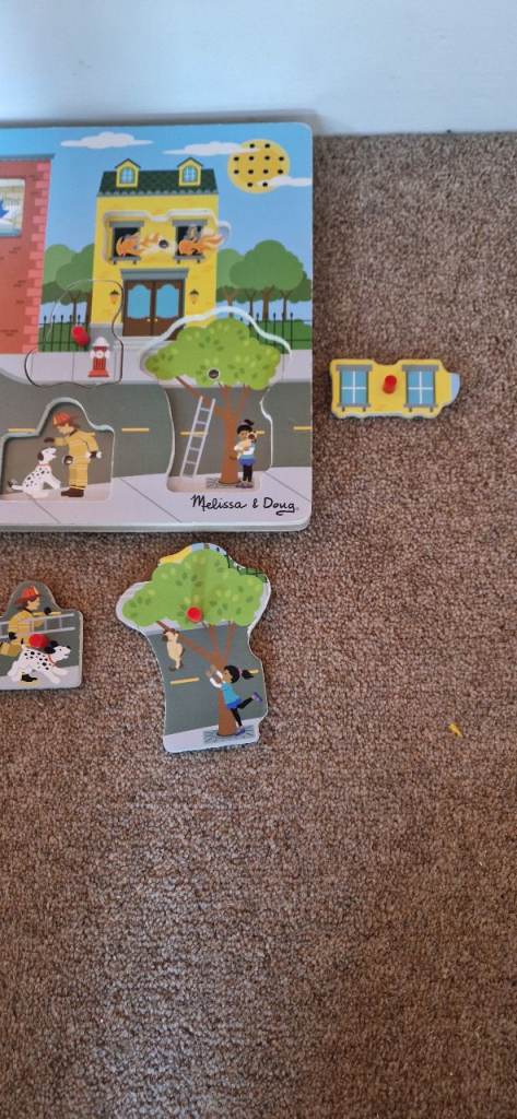MELISSA AND DOUG WOODEN SOUND PUZZLE. AROUND THE FIRE STATION. INC BATTERIES. EXCELLENT.