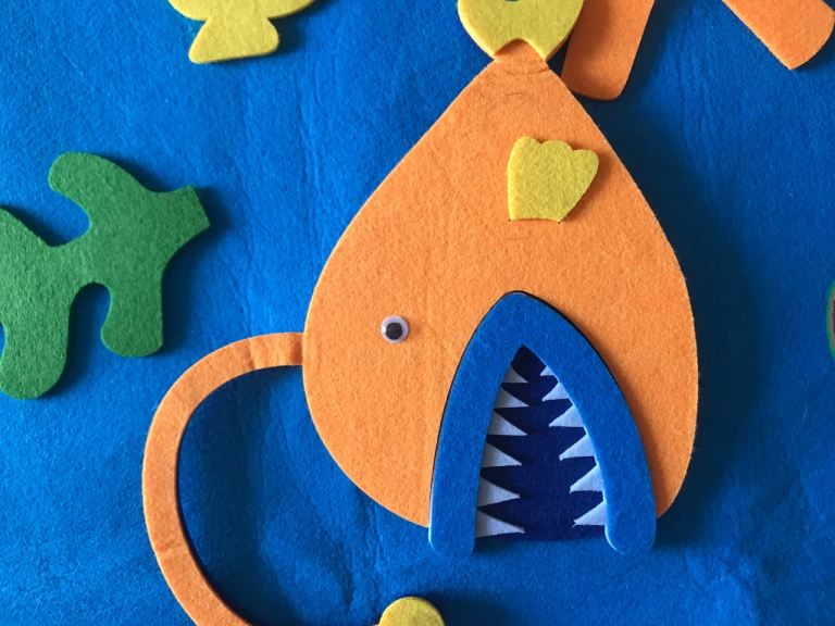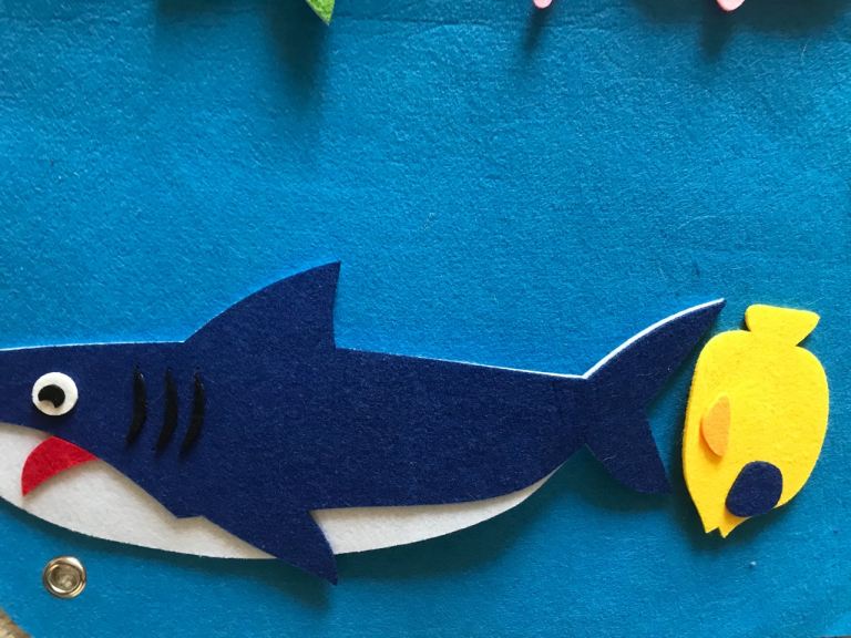 Felt board with stickers of animals under the sea - shark ,clown fish , sea horse etc