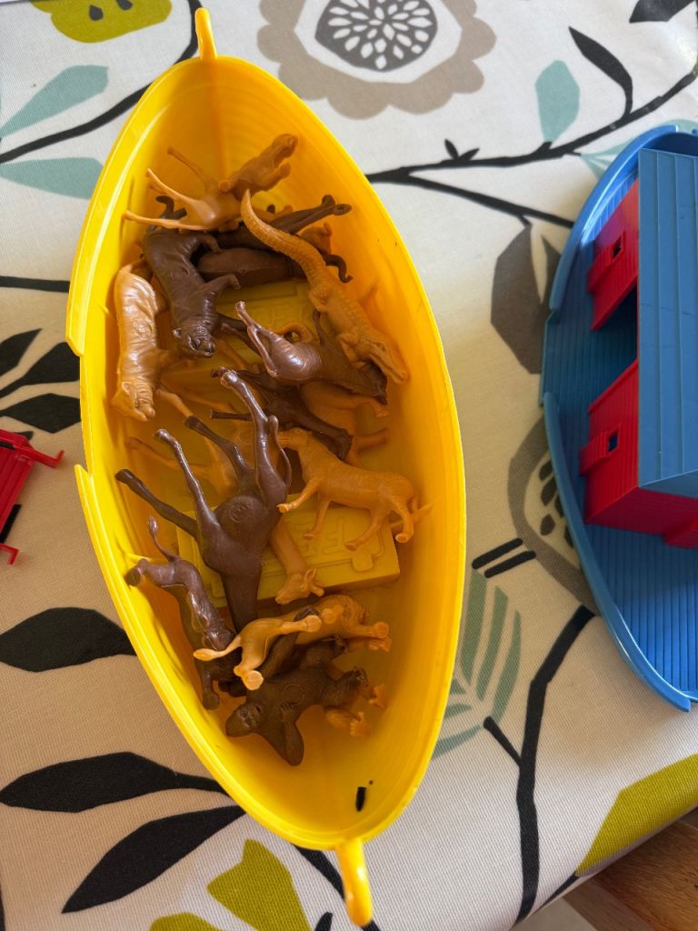 Noah’s Ark, & carrier bag of farm & zoo animals