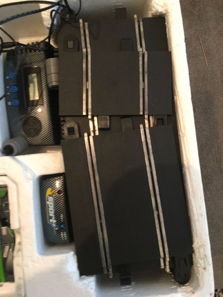Slot racing car set 2 cars with headlights,Track ,transformer in excellent condition hardly used