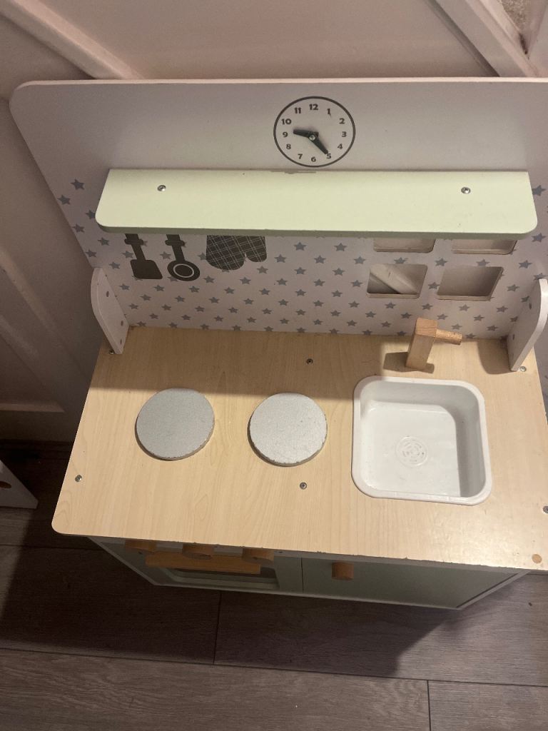 Lovely wooden toy kitchen in good condition . From a smoke free home .