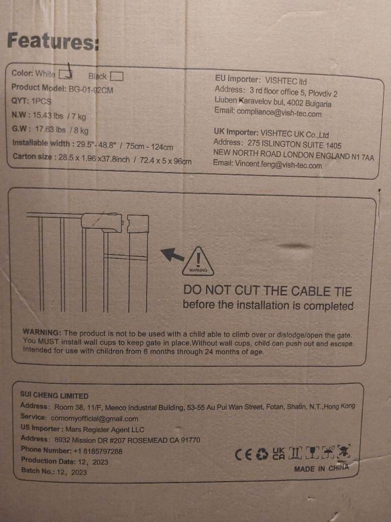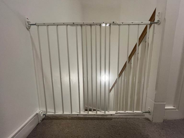 (EXTRA TALL-EXTRA WIDE) NEW, PERFECT CONDITION, CHILDS SAFTEY GATE. 75CM-124CM EXTENSIONS TO FIT ANY WIDTH. Bargain!