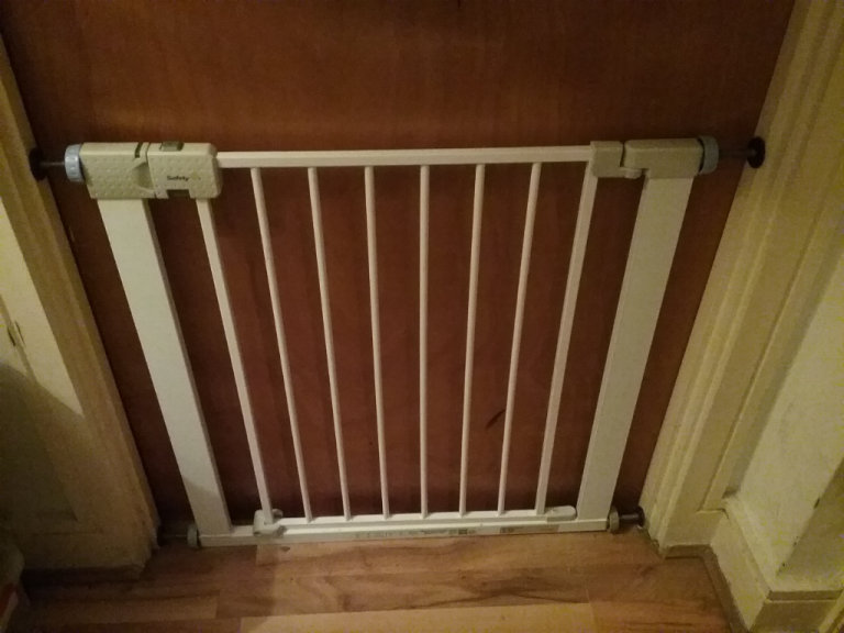 The second gate was used in the bedroom door which didn't need anything as the pressure of the gate held it in place.