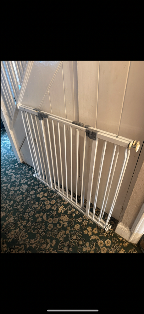 Here I am selling 2x tall extra wide baby gates in good condition £25 each Or £45 for the pair