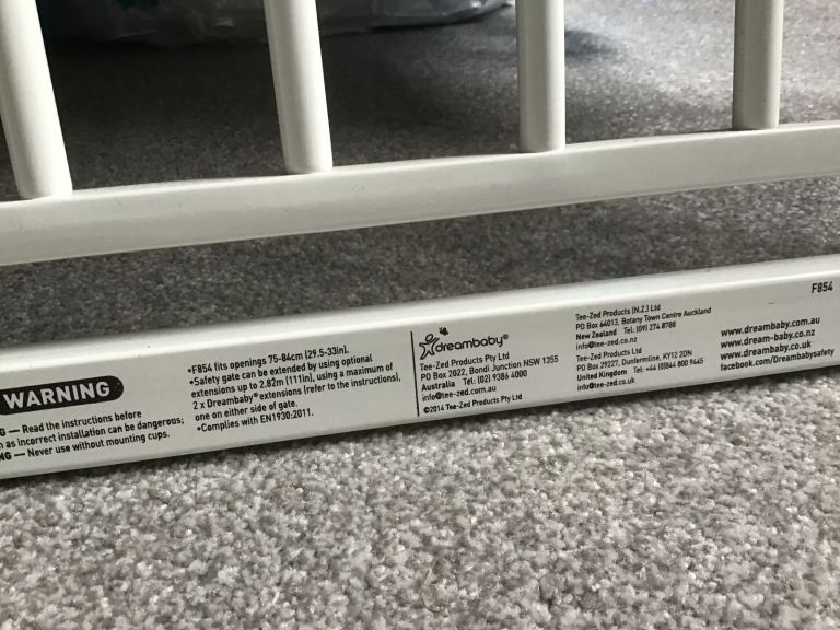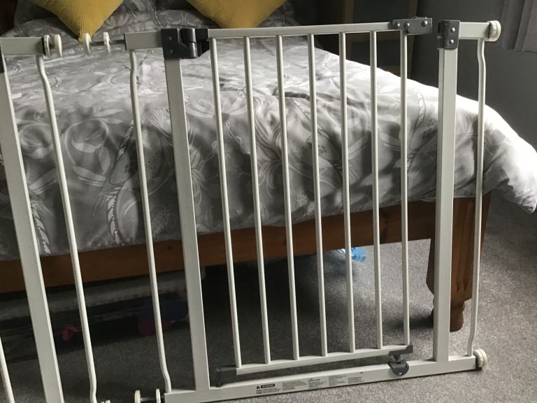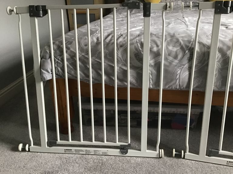 Dream Baby extendable matching stairgates. Pressure fitted to sides of wall/ stairs with opening in centre. Only used when grandchildren stayed over.