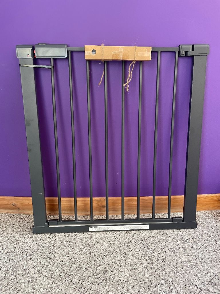 LINDAM BY MUNCHKIN STAIR GATES: This child safety gate with squeeze and lift handle offers easy adult opening. The extra wide walk-through stairgate is made from strong steel, with no drilling needed