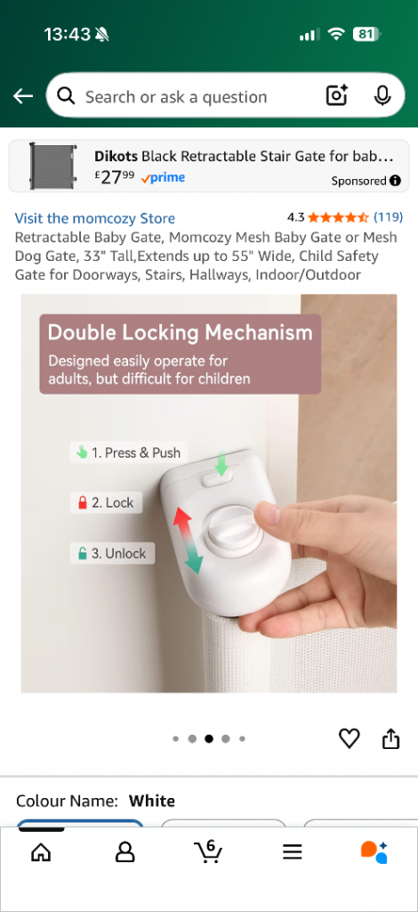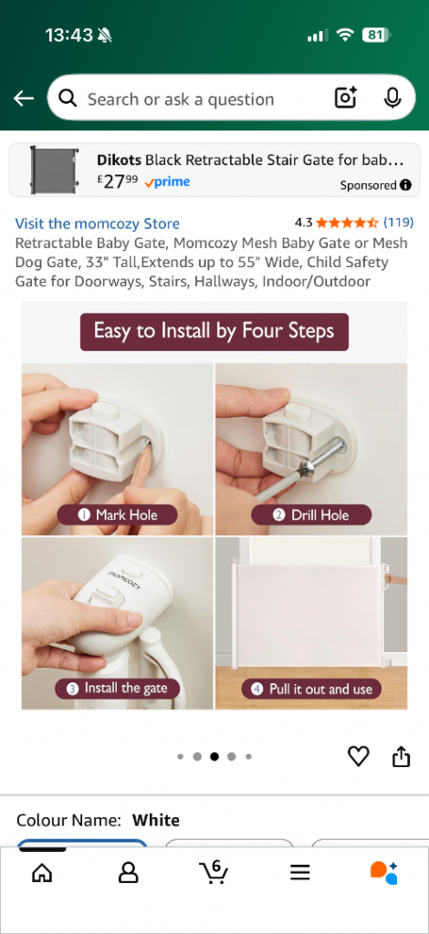Posting for 12+ yearsMomcozy Retractable White Mesh Baby Gate New