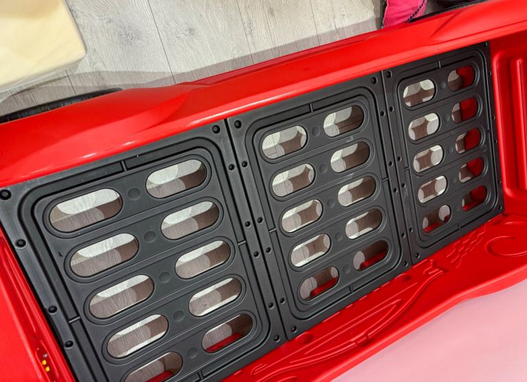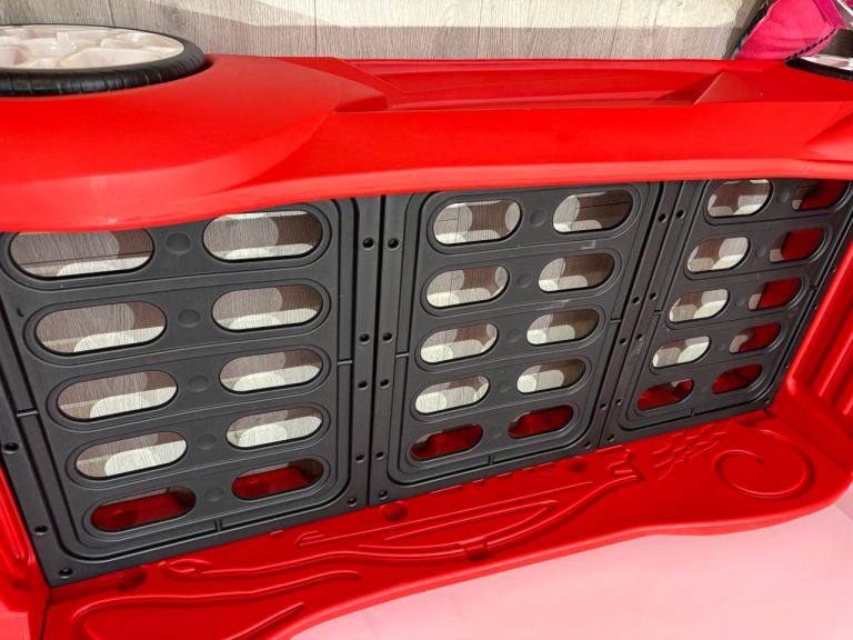 The bed features built-in lights and engine sound effects, making it a favourite with children who love cars.