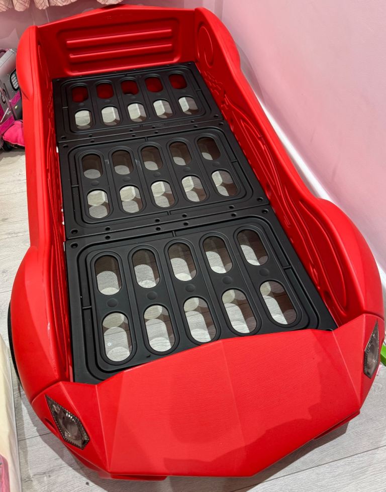 Selling a fun red racing car bed for kids, perfect for transitioning from a cot to a proper bed.