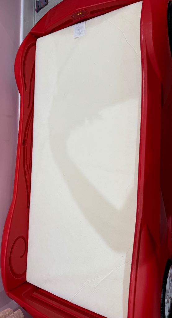 Posting for 12+ years** Red Racing Car Bed with Lights & Engine Sounds + Mattress – Kids Toddler Bed **