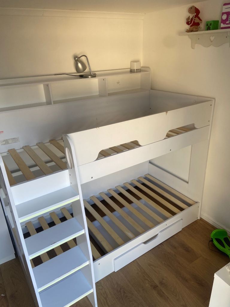 Bunk bed for sale with mattress. A few small marks, but overall in very good condition. You will need to dismantle it yourself