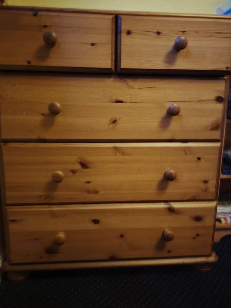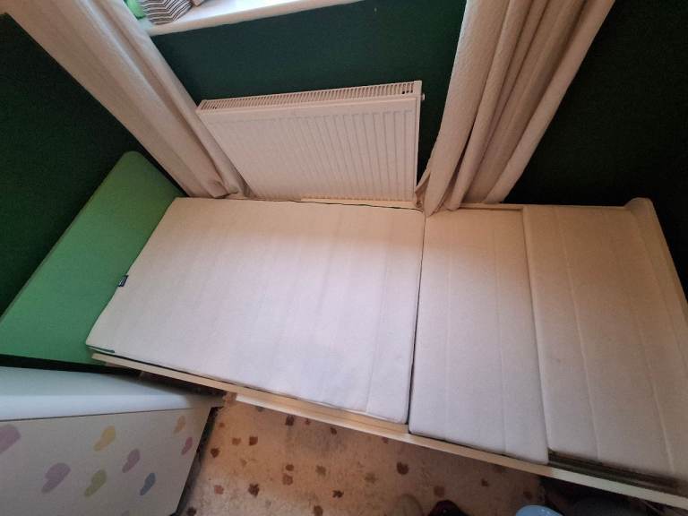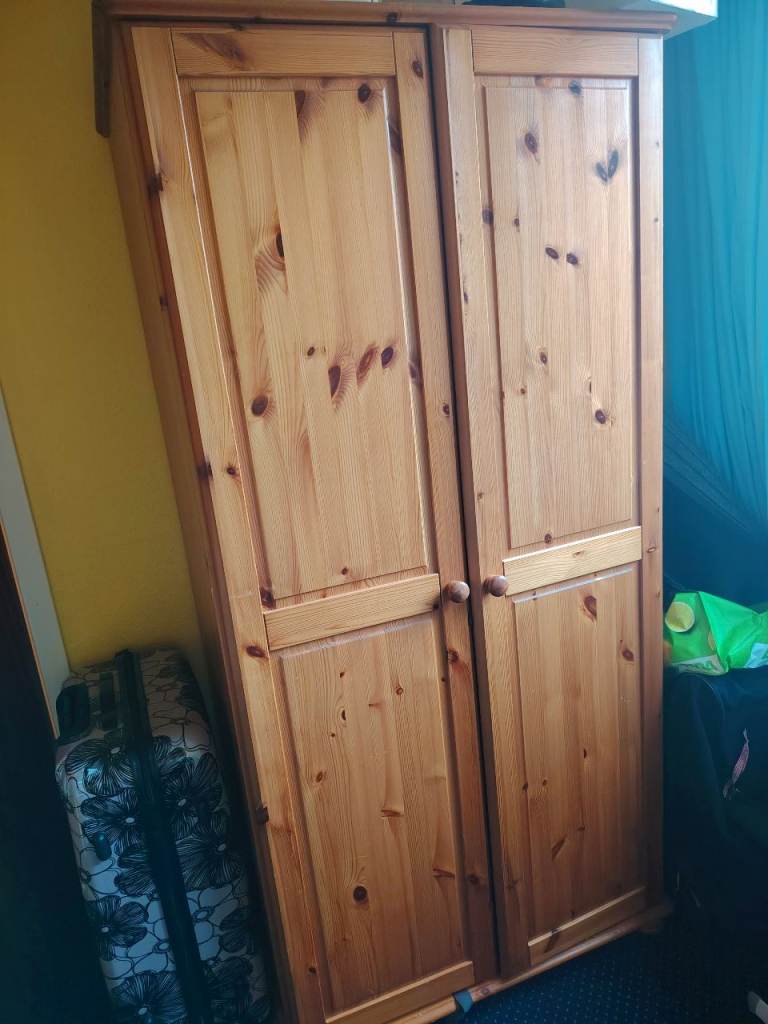 Solid wood bunkbeds with a chest of drawers & wardrobe in good condition.