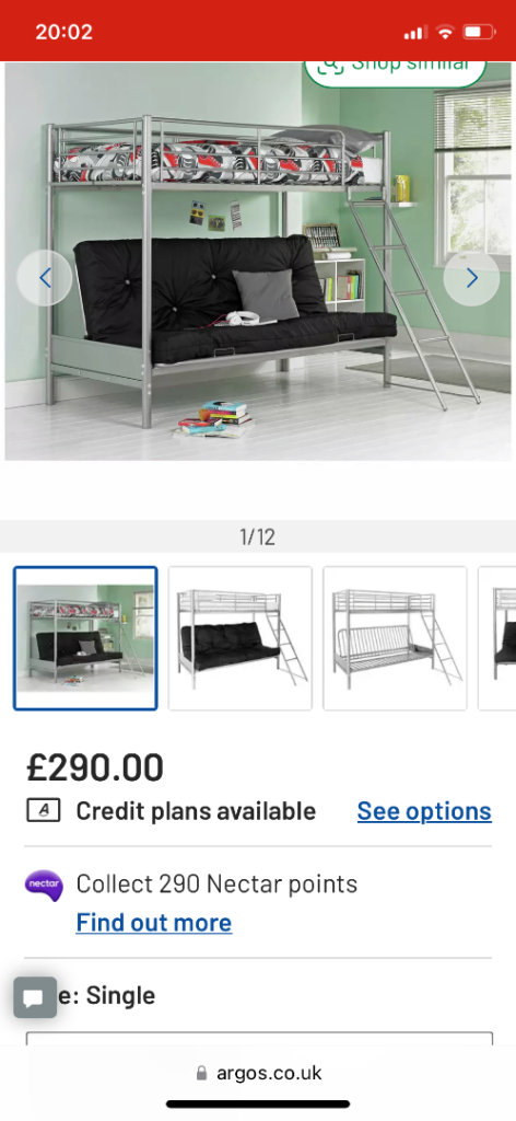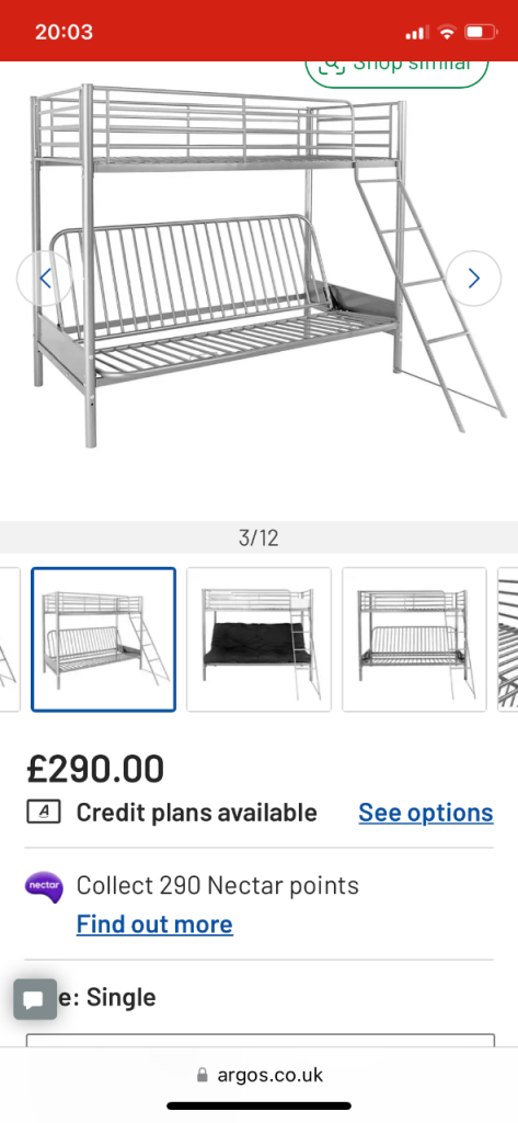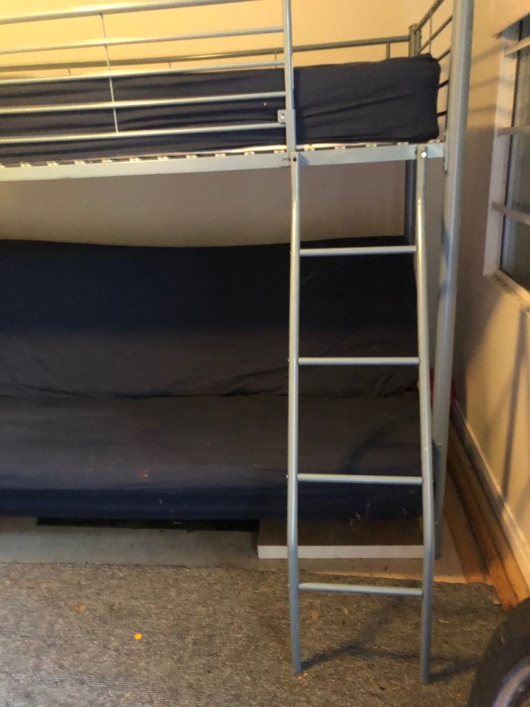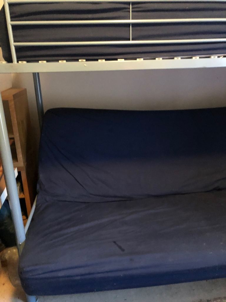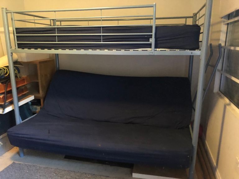 Grey metal bunkbeds good condition can be single bunkbed on top bottom turns into a double bed or sofa to sit on £120