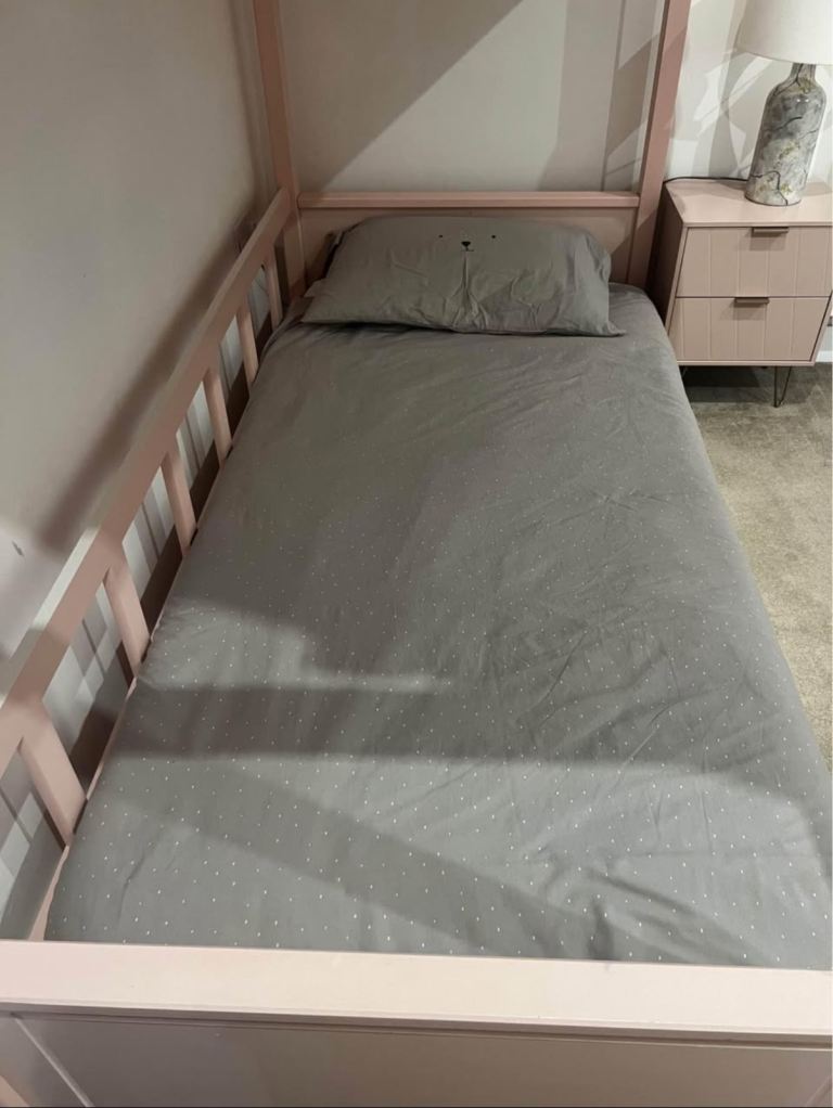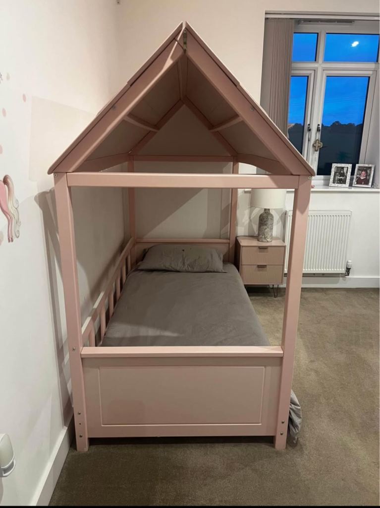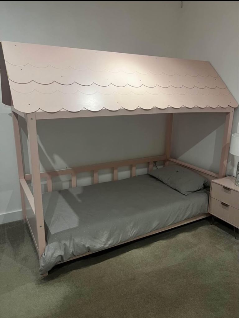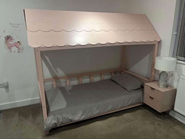 Girls pink single bed with roof and side panelling