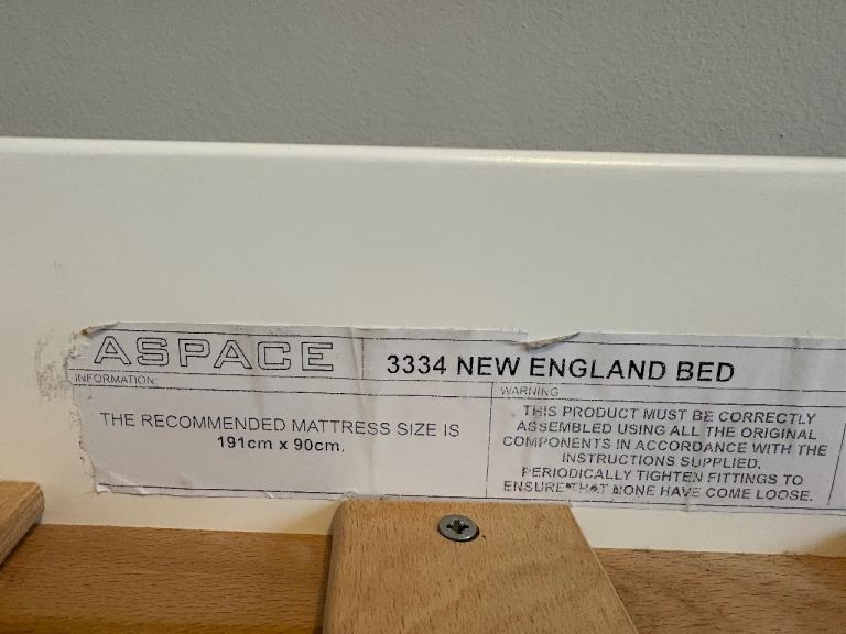 Aspace wooden single bed. Good condition apart from 1 chip as seen in photo.