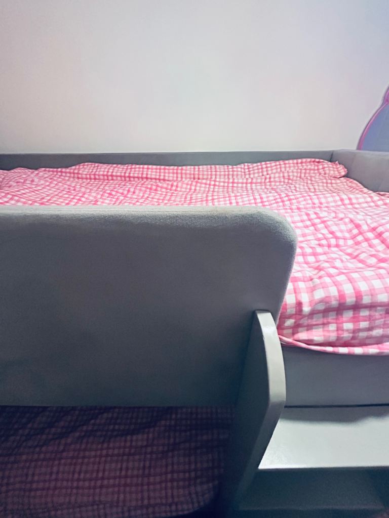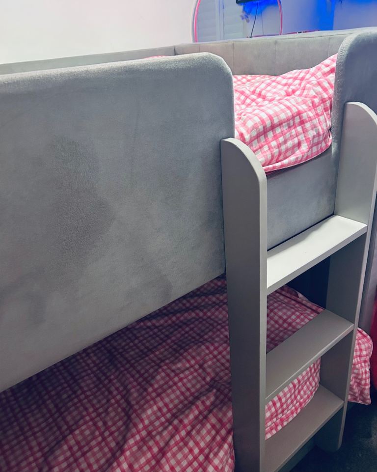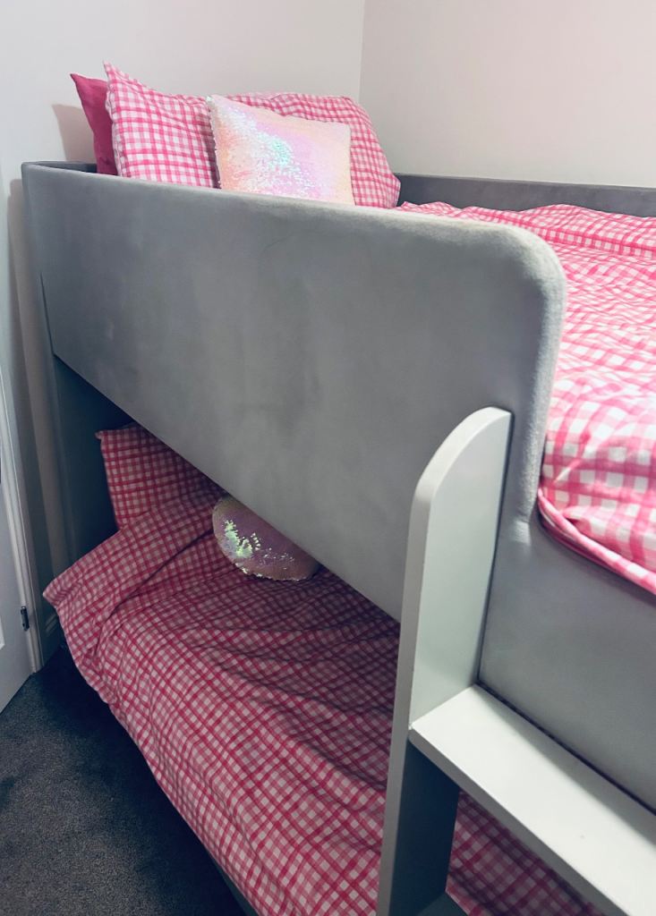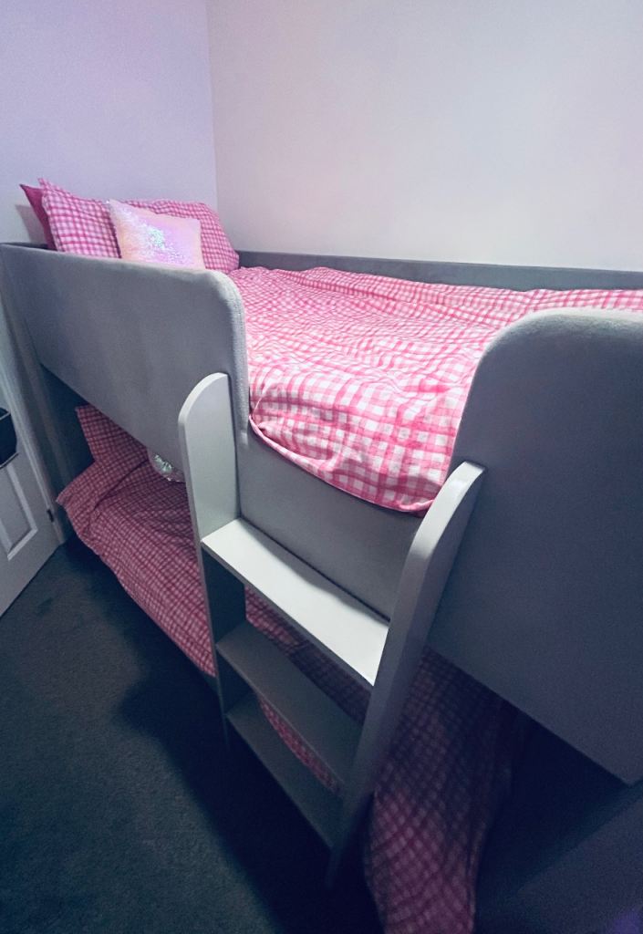 Immaculate condition. Only mark is on the top bunk by the ladder where my daughter has grabbed the bed walking up the ladder.
