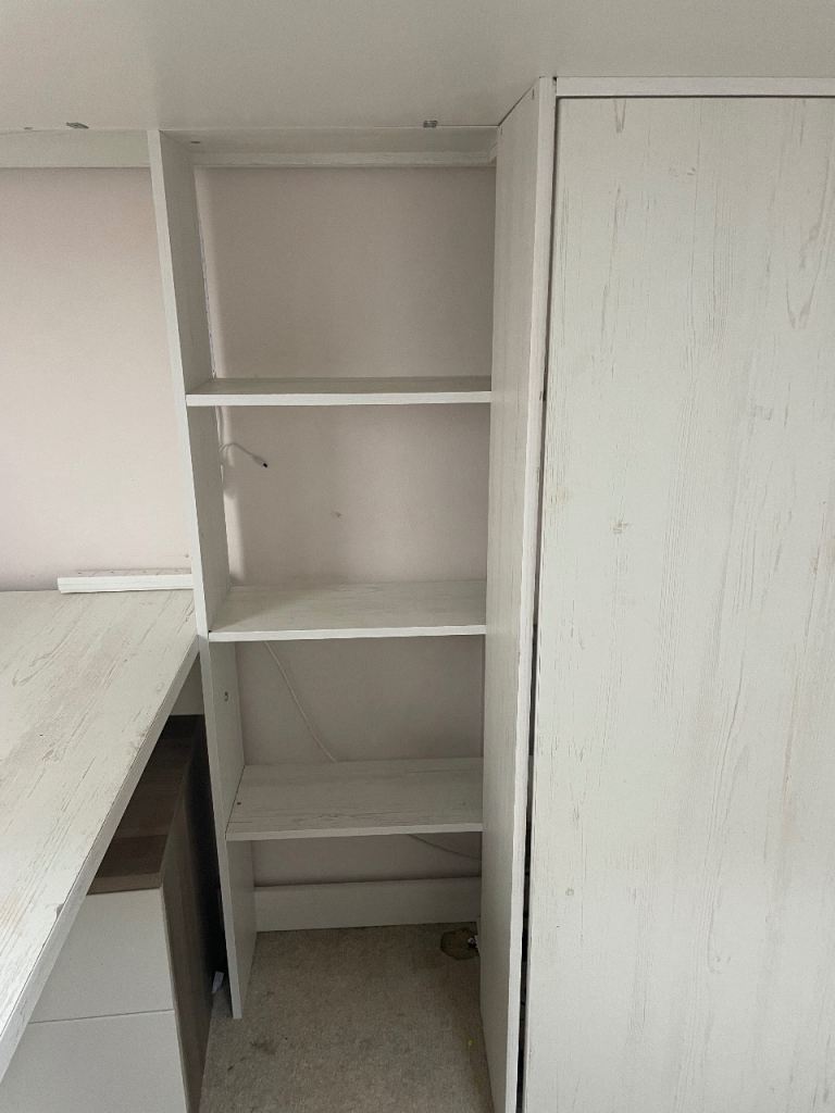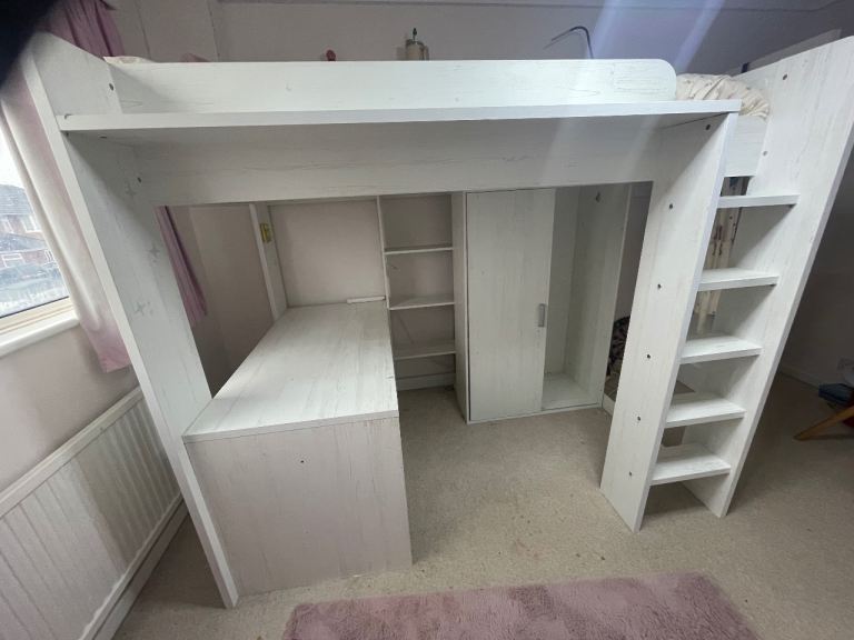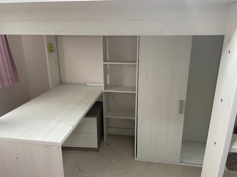 High Sleeper Bed, Desk, Shelving and Wardrobe Storage.