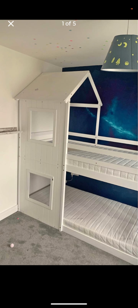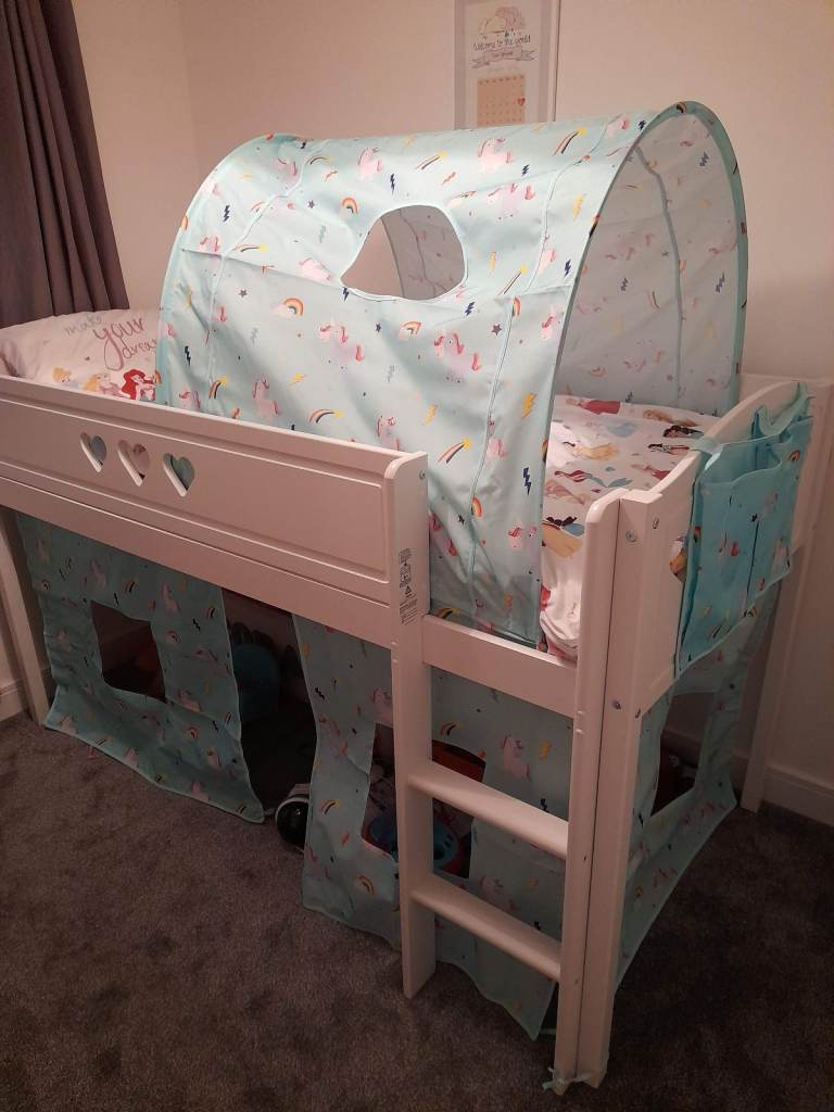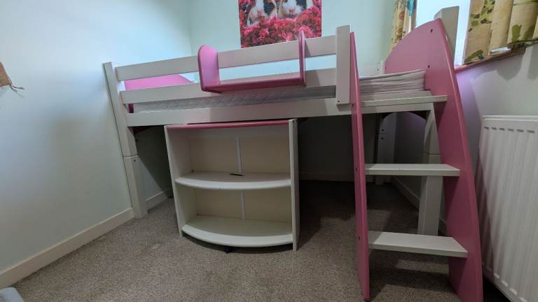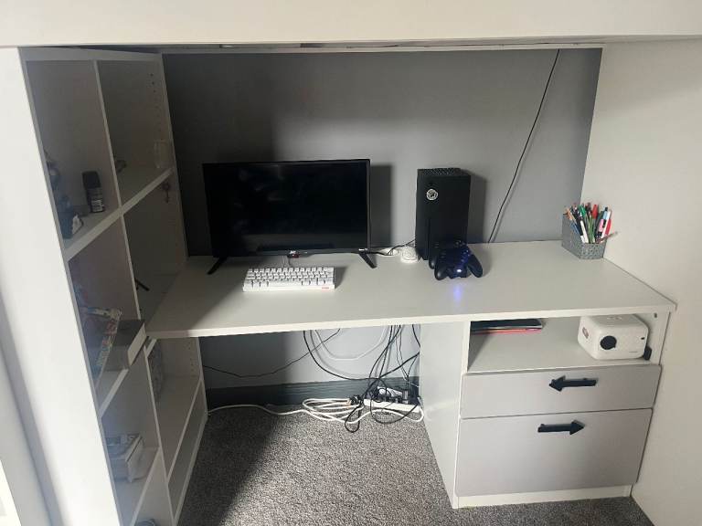 IKEA loft bed for sale less than 1 year old so in great condition. Has a wardrobe and 2 drawers under the desk. Additional photos to follow