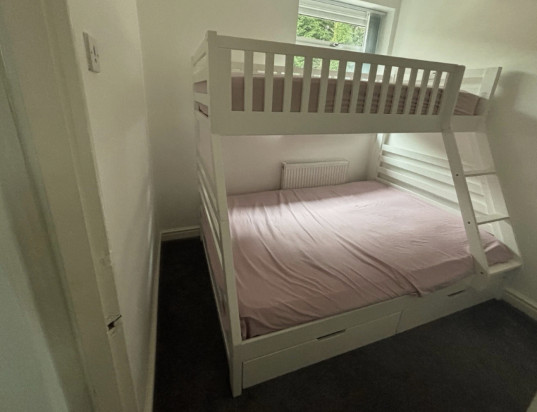 Grey double size bunk bed frame in great condition. Selling at a bargain due to house move. There are few signs of tear and wear but this hardly noticeable or can be painted to look new again! Selling at a bargain for £100 frame cost £400 brand new and only been used for 2 years. So it has plenty of life still left in it!!