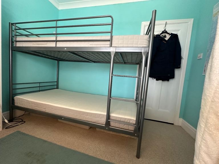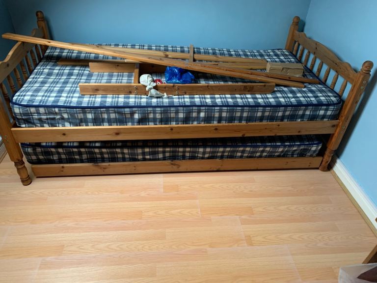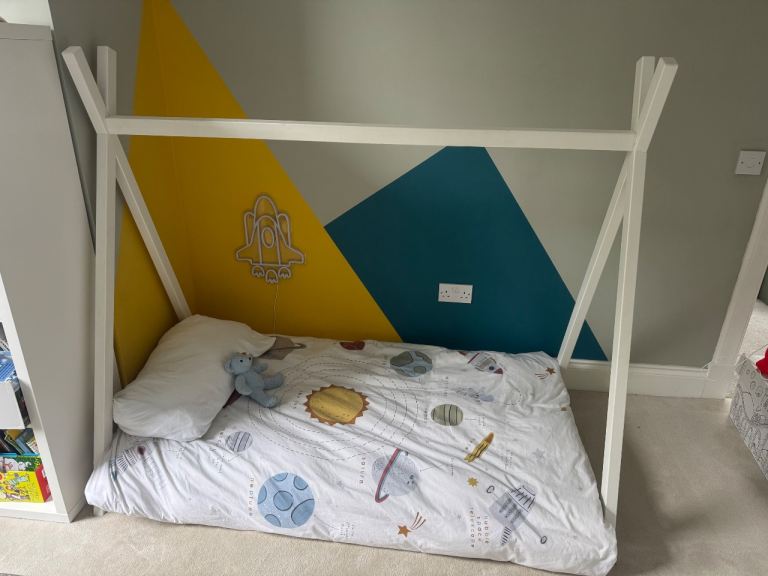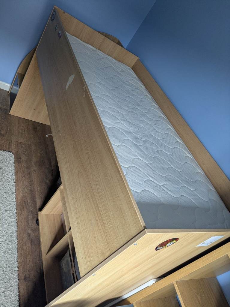 Kids bed with memory foam mattress. Hardly used excellent condition. Can be dismantled for collection. Cash only