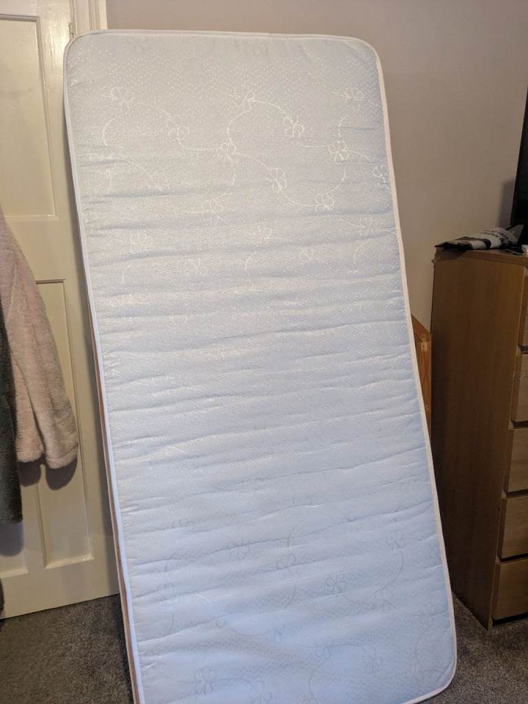 Fits a standard single mattress - can be included if required (lightly used from spare bed).