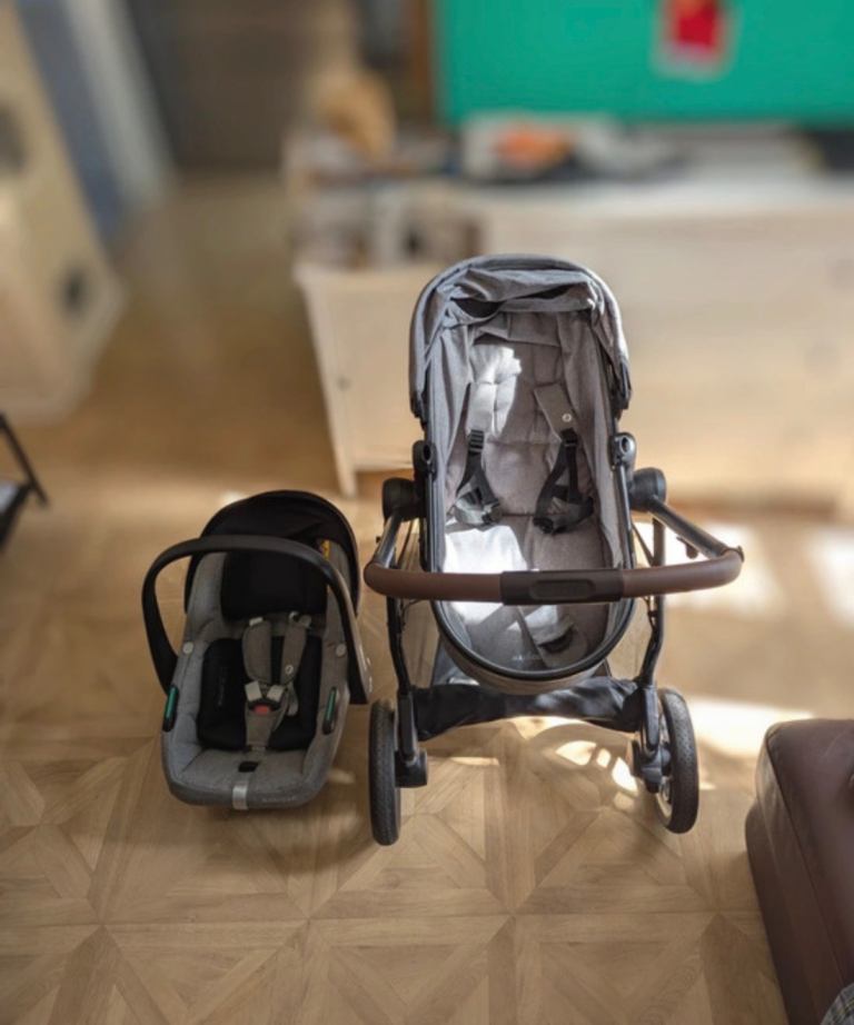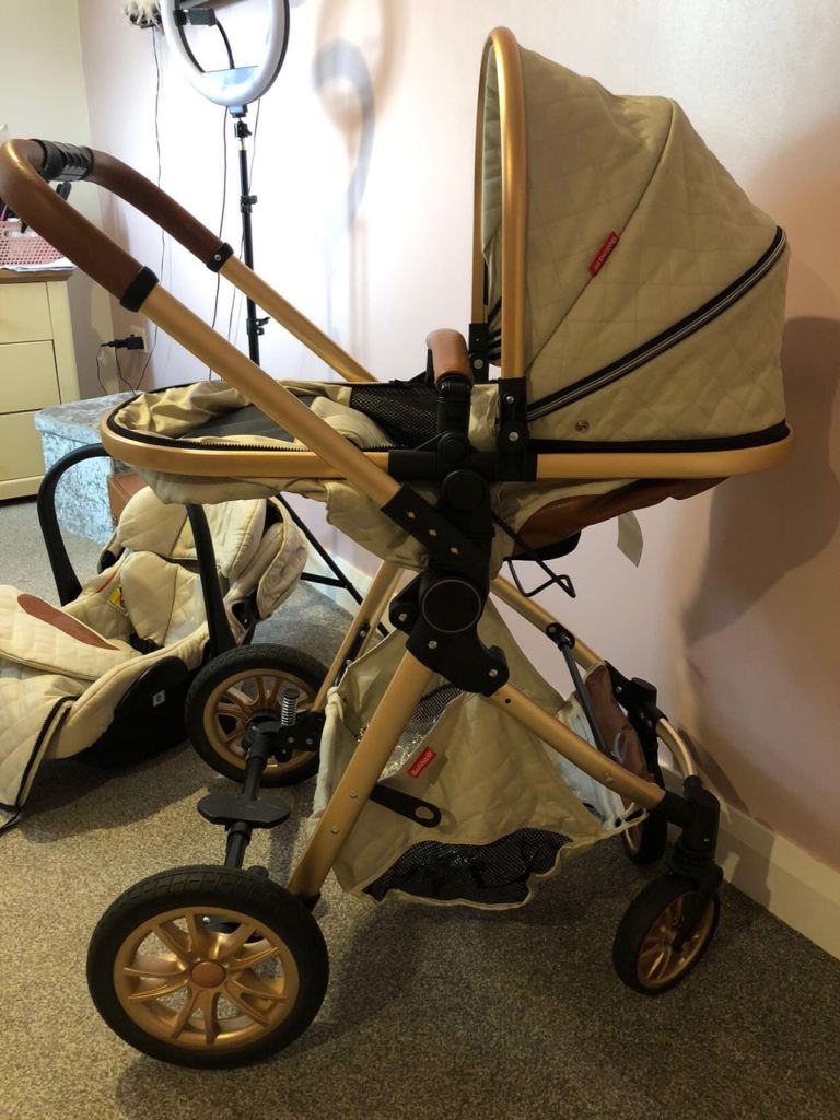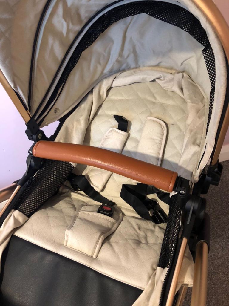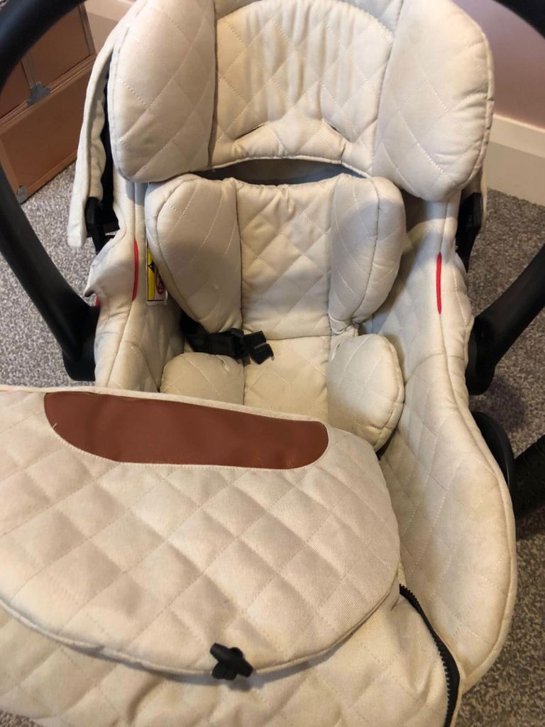 Pram comes with car seat, pram does from baby to toddler turns into stroller, u can adjust chair never been used also. Rain cover an basket also as seen. Was £450.