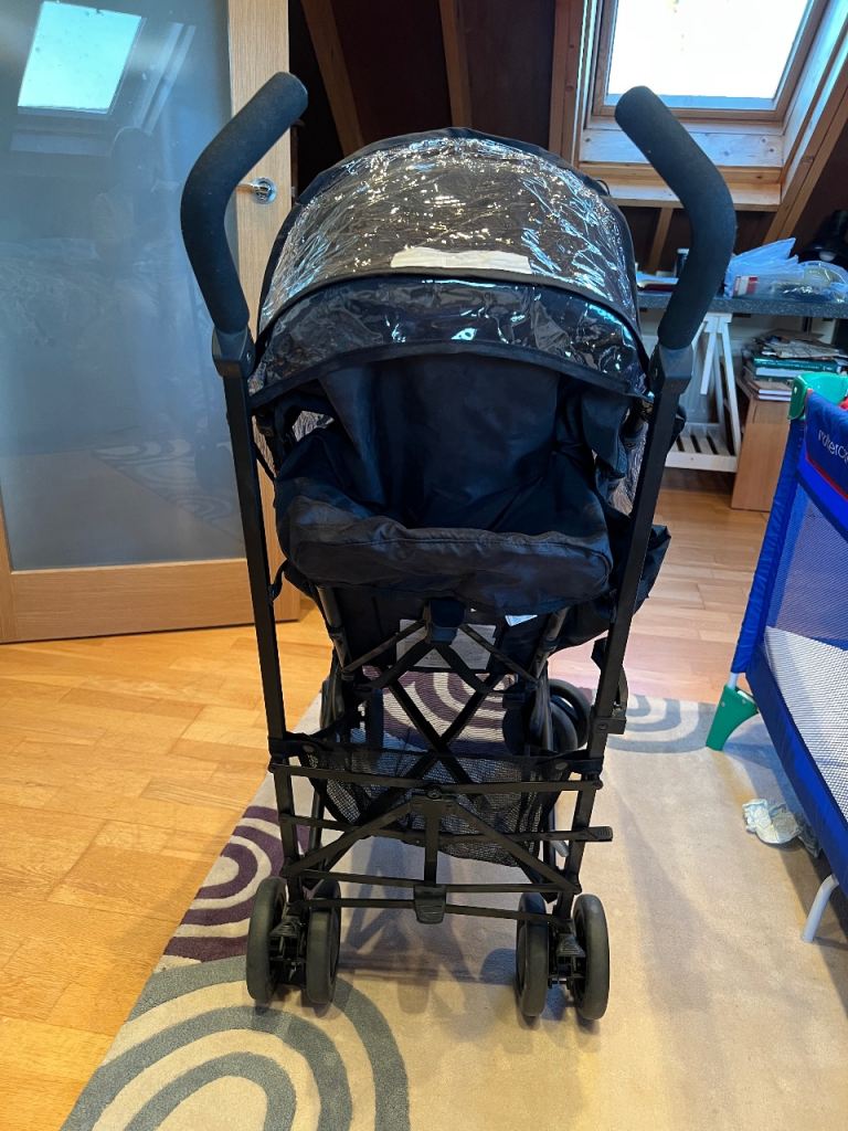 Light and easily folded and unfolded. It was bought for use with grandchild so did not get much use. Muff and raincover included.