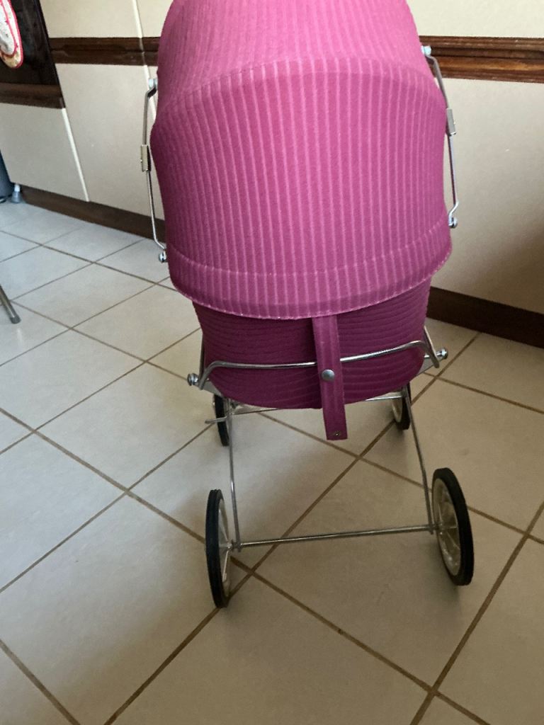 Excellent girls pram. Has been stored in private house cupboard and was hardly used when bought. Is of solid construction all round and am sure would be a delight for a girl of perhaps around 7yrs upwards.