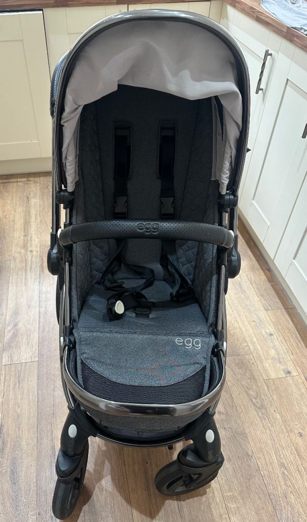 Egg2 stroller, carry cot, car seat, ISOFIX base, rid on board with seat, rain covers, sun parasol, adaptors to fix car seat to stroller and all associated liners/winter base layer.