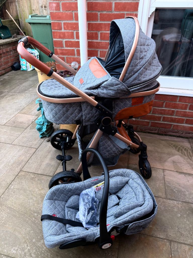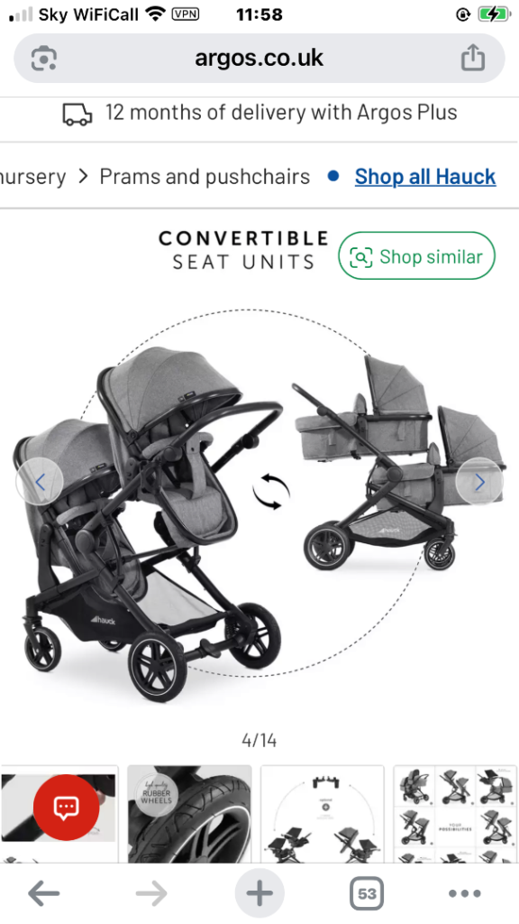 Hauk twin pram / buggy with foot muffs and rain covers grey in colour never used was bought for 2nd pram at grand parents
