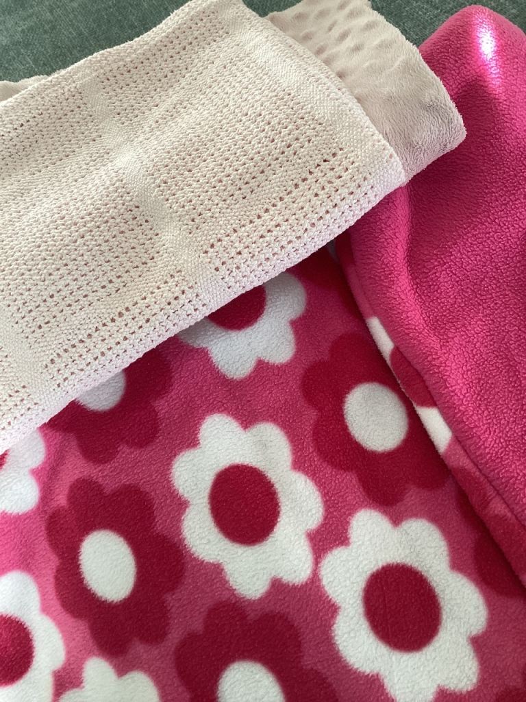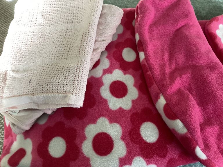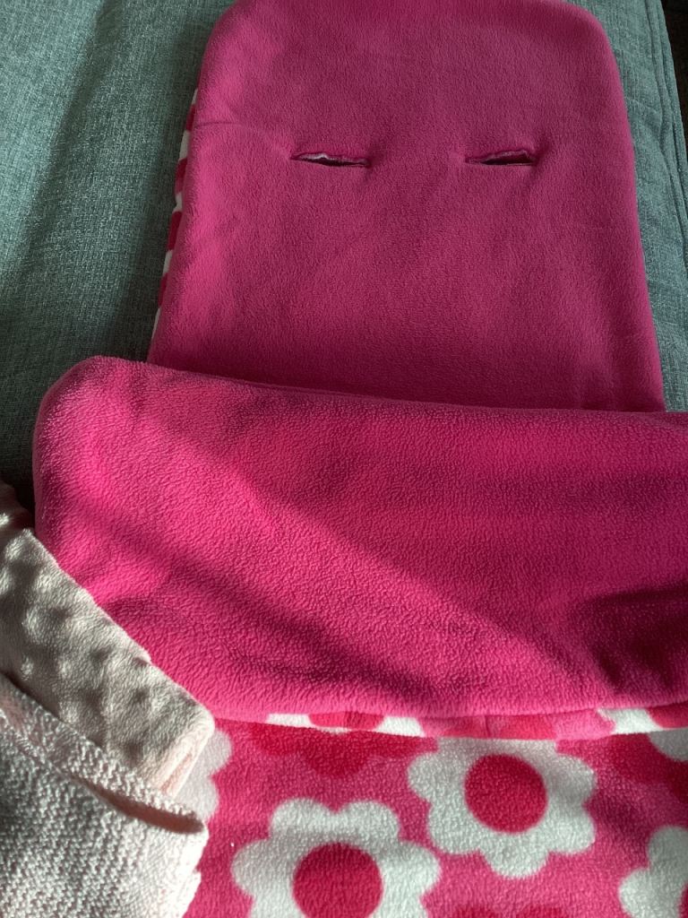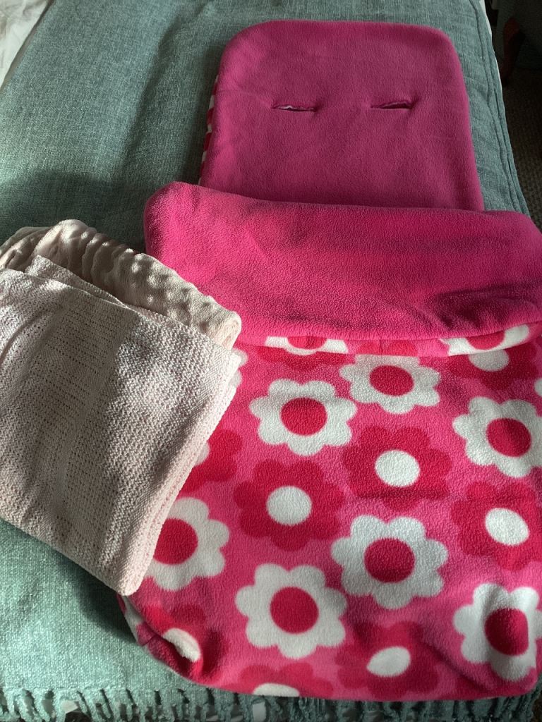 Lovely pink padded warmer for children in buggies. John Lewis. Very good condition. Only used by one little girl. Clean. Also 2 light pink blankets. Colour is better in daylight, photos don’t do the items justice.