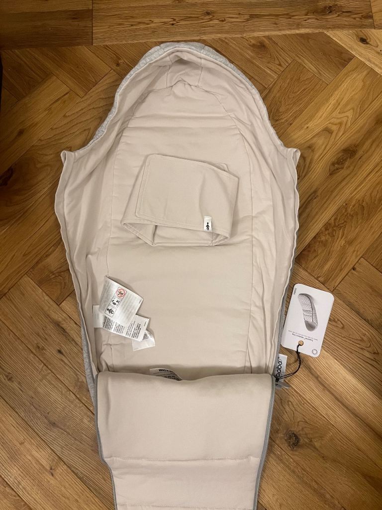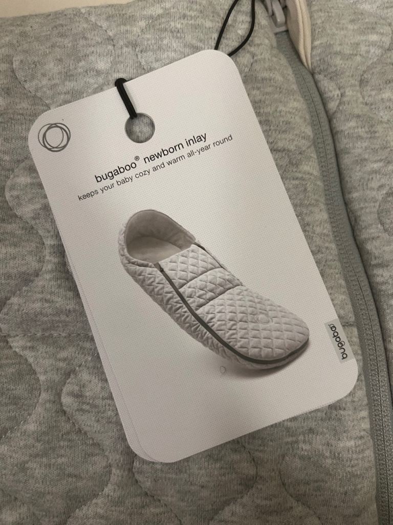 Light grey newborn pram insert/inlay/pramsuit. Bugaboo brand but can be used in any brand pram/buggy. All-year-round use. Quilted, cotton fabric. Inner strap to keep baby in place while on the move. Perfect condition, never used, tags still on. For ages birth - 6 months. Pet and smoke free home.