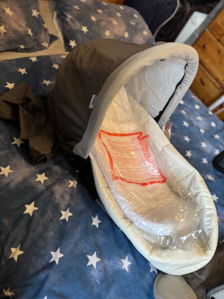In a very good condition, the cot never been used and car seat was used barely